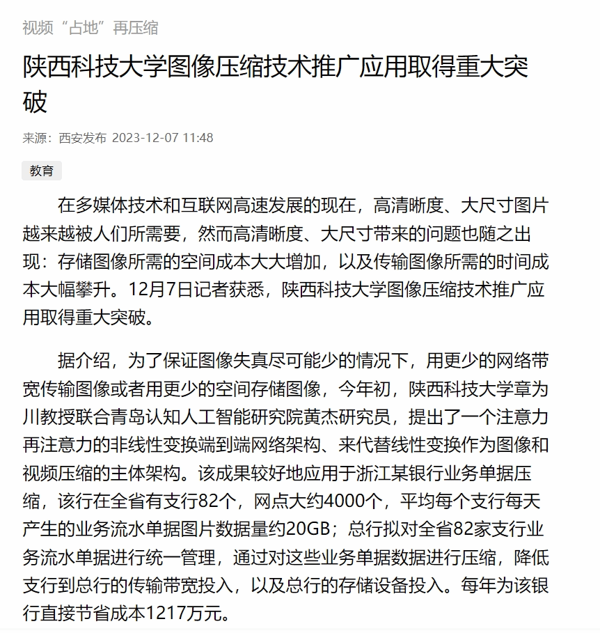 西安發(fā)布:陜西科技大學圖像壓縮技術(shù)推廣應(yīng)用取得重大突破