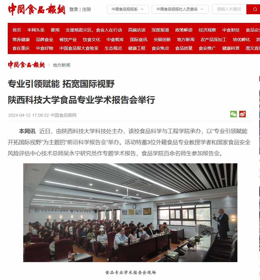 中國食品網(wǎng):陜西科技大學(xué)食品專業(yè)學(xué)術(shù)報告會舉行