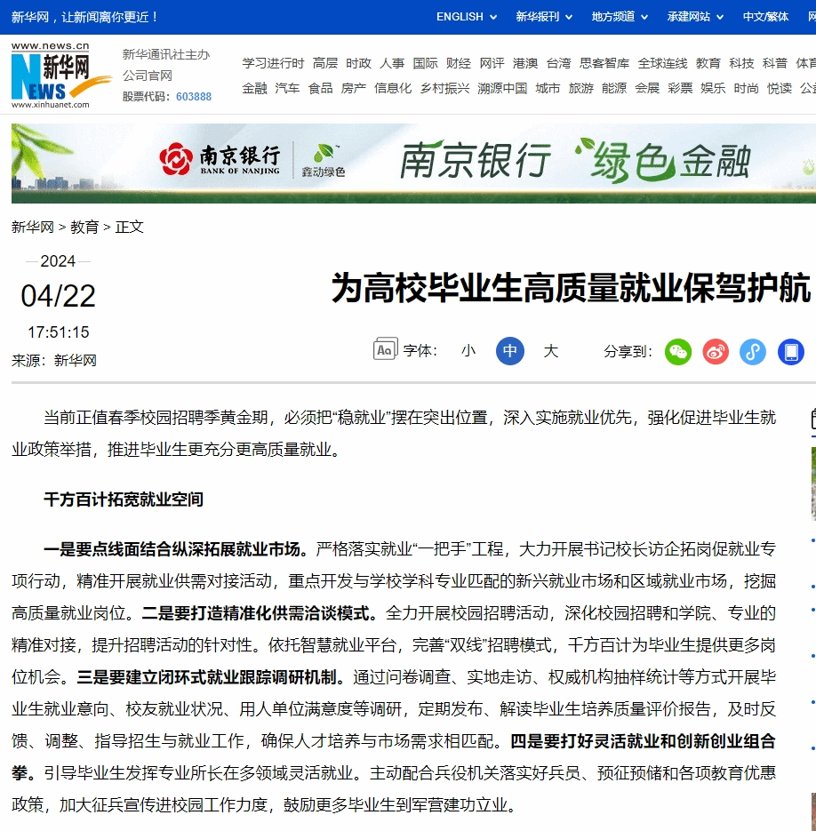 新華網(wǎng):為高校畢業(yè)生高質(zhì)量就業(yè)保駕護航