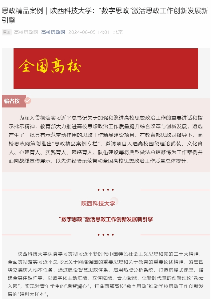 高校思政網(wǎng):思政精品案例|陜西科技大學:“數(shù)字思政”激活思政工作創(chuàng)新發(fā)展新引擎
