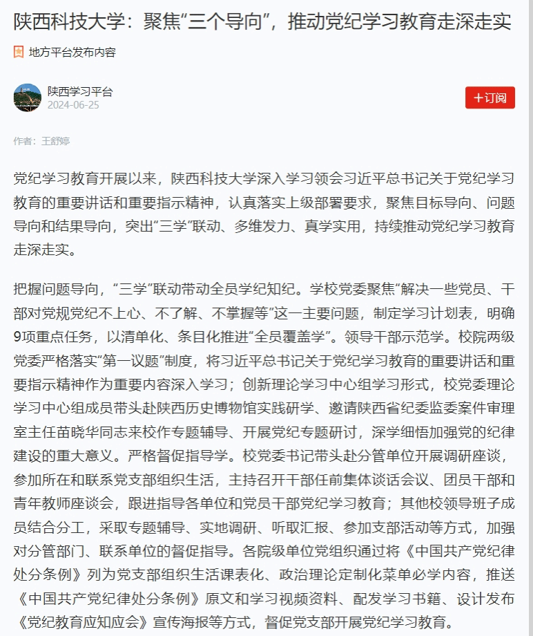 學習強國:陜西科技大學:聚焦“三個導向”,推動黨紀學習教育走深走實