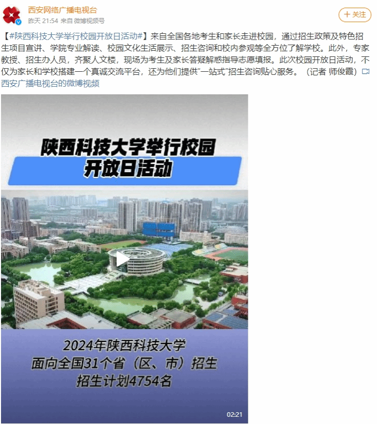 西安網(wǎng)絡(luò)廣播電視臺:陜西科技大學舉行校園開放日活動