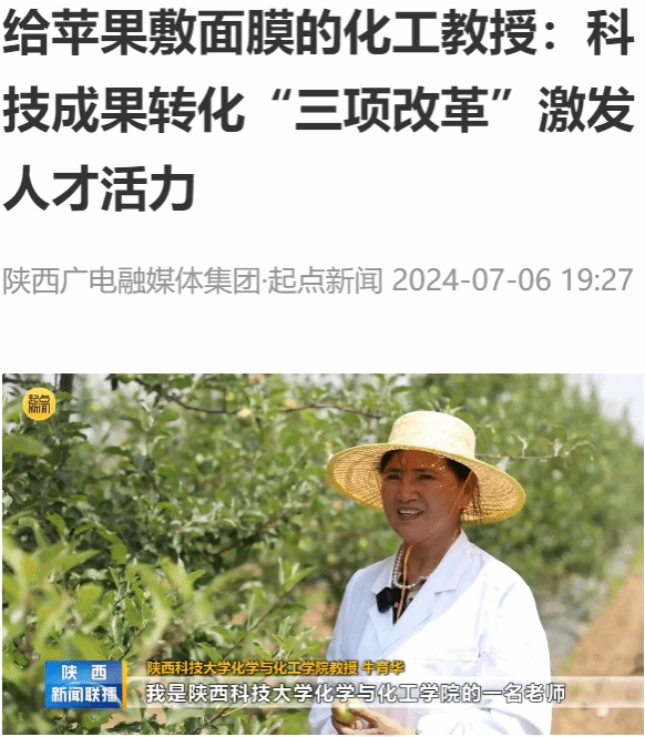 《陜西新聞聯(lián)播》:給蘋果敷面膜的化工教授:科技成果轉(zhuǎn)化“三項(xiàng)改革”激發(fā)人才活力