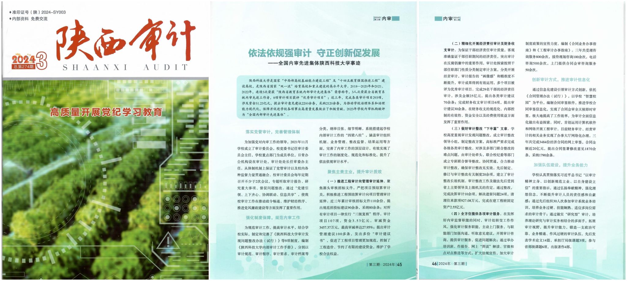 近日,《陜西審計(jì)》(2024年第三期,總第274期)內(nèi)審專欄報(bào)道我校審計(jì)處先進(jìn)集體事跡。原文如下: