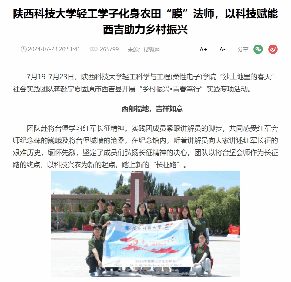 近日,《中華網(wǎng)》《中國大學生在線》《陜西青年網(wǎng)》報道我校學子化身農(nóng)田“膜”法師,以科技賦能西吉助力鄉(xiāng)村振興。