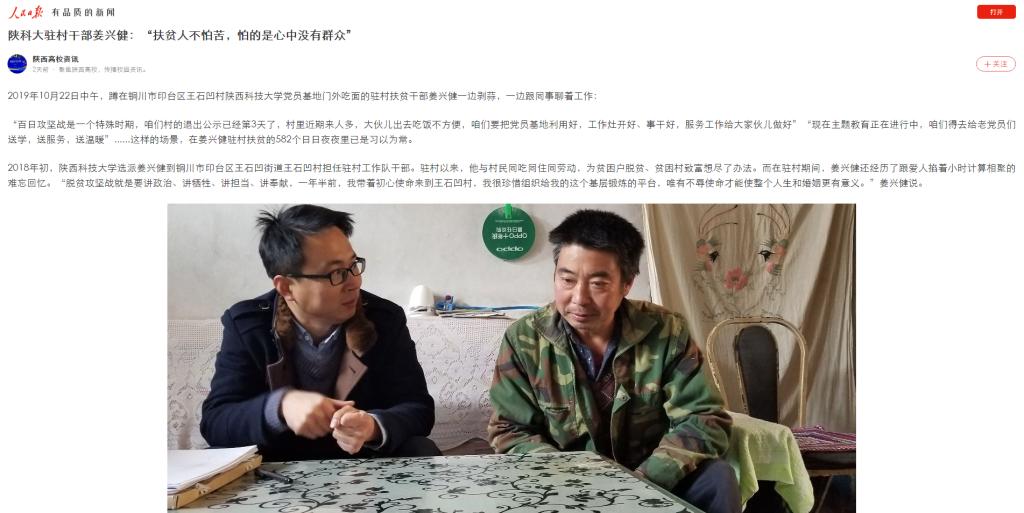 人民日?qǐng)?bào)App:陜科大駐村干部姜興?。骸胺鲐毴瞬慌驴?,怕的是心中沒(méi)有群眾”