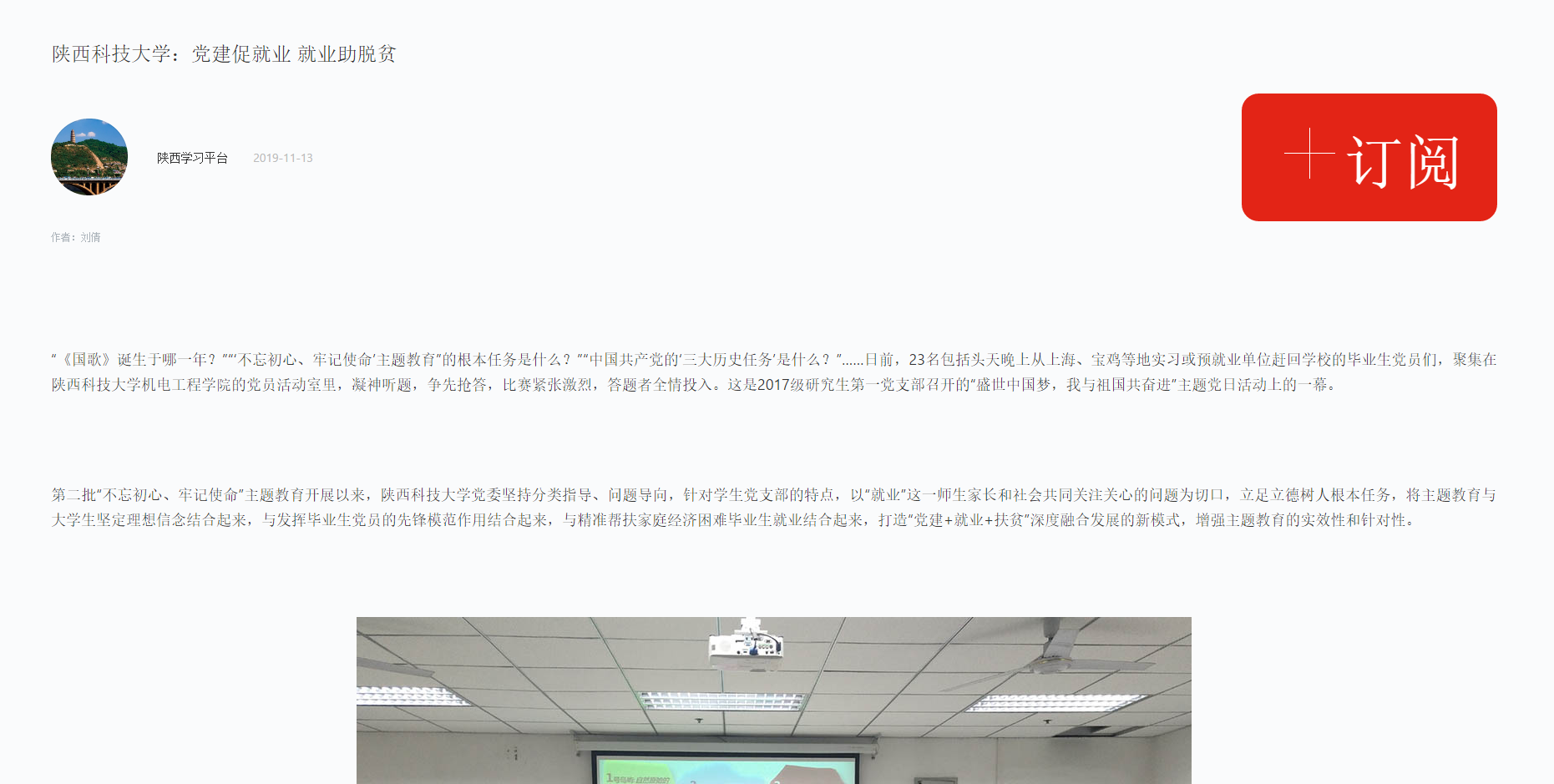 深挖學(xué)校資源,搭建“陜西科技大學(xué)黨員教育基地”這一扶貧載體,先后調(diào)動(dòng)學(xué)校20余家職能部門(mén)及學(xué)院近300人次來(lái)到基地,通過(guò)調(diào)研考察、學(xué)習(xí)教育、社會(huì)實(shí)踐、建立寫(xiě)生基地、捐建愛(ài)心超市和捐贈(zèng)物資等形式助力、聚力、接力扶貧。