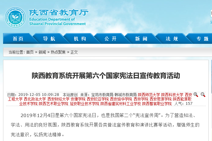 陜西教育系統(tǒng)開展第六個(gè)國(guó)家憲法日宣傳教育活動(dòng)