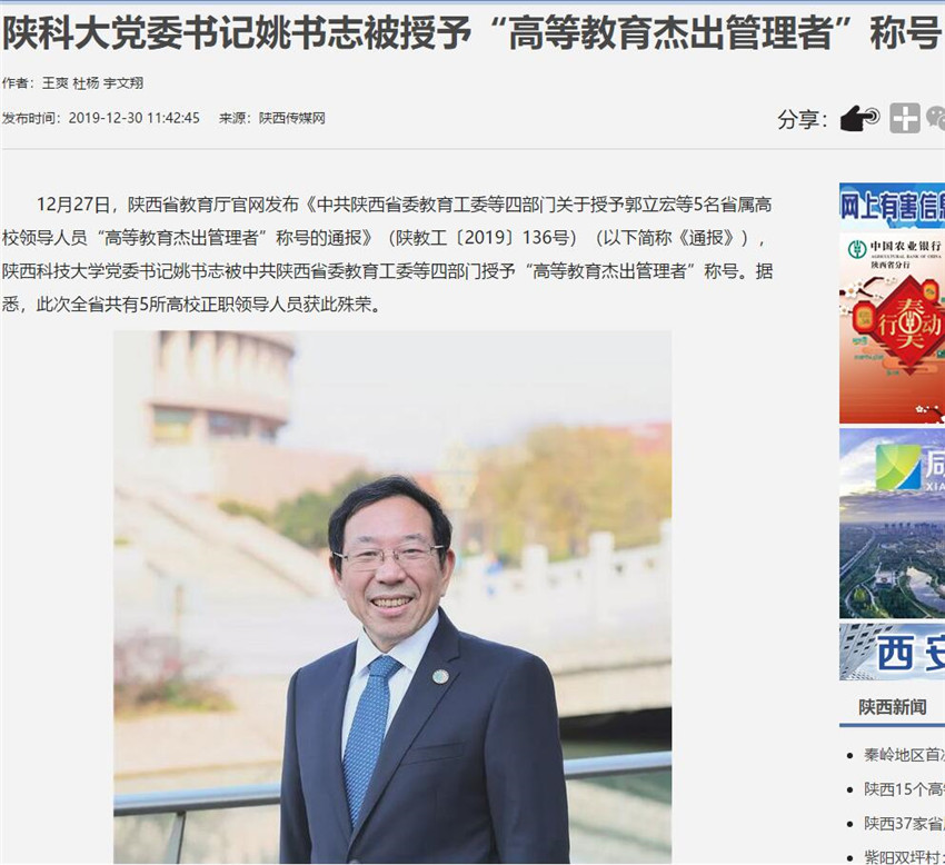 網(wǎng)易新聞APP:陜西科技大學(xué)黨委書記姚書志被授予“高等教育杰出管理者”稱號(hào)