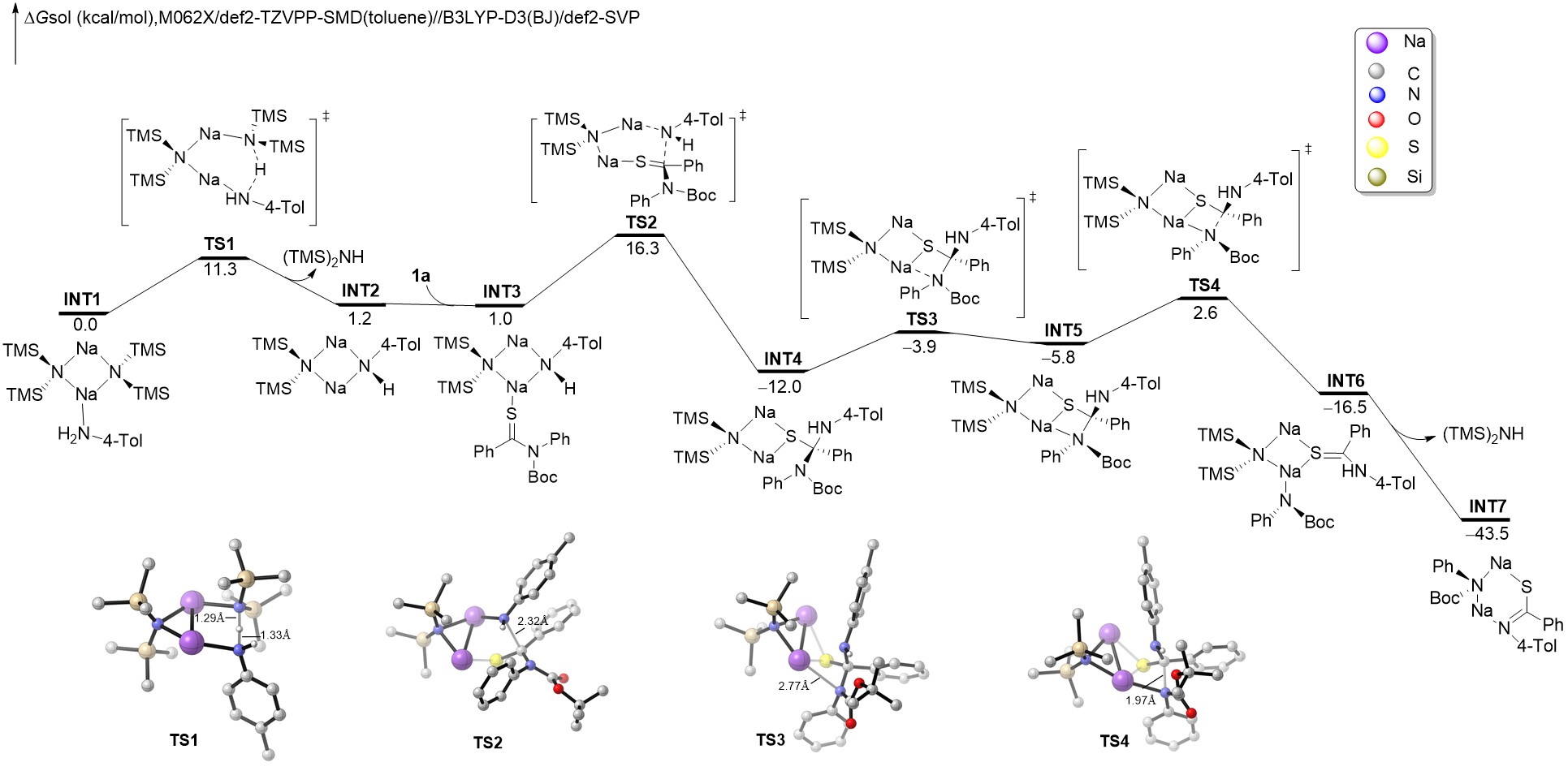 “Chemoselective Transamidation of Thioamides by Transition-Metal-Free N–C(S) Transacylation”首次提出了硫代酰胺的“基態(tài)去穩(wěn)定化”(ground-state-destabilization)策略,實(shí)現(xiàn)了在藥學(xué)、生物學(xué)領(lǐng)域有著廣泛應(yīng)用的硫代酰胺的轉(zhuǎn)胺化反應(yīng)。該方法不僅避免了毒性過渡金屬催化劑的使用,而且有著廣泛的底物適用范圍(>100個底物)。為了進(jìn)一步厘清硫代酰胺轉(zhuǎn)胺化的反應(yīng)機(jī)理,該論文還通過密度泛函理論對反應(yīng)過程進(jìn)行了探討。