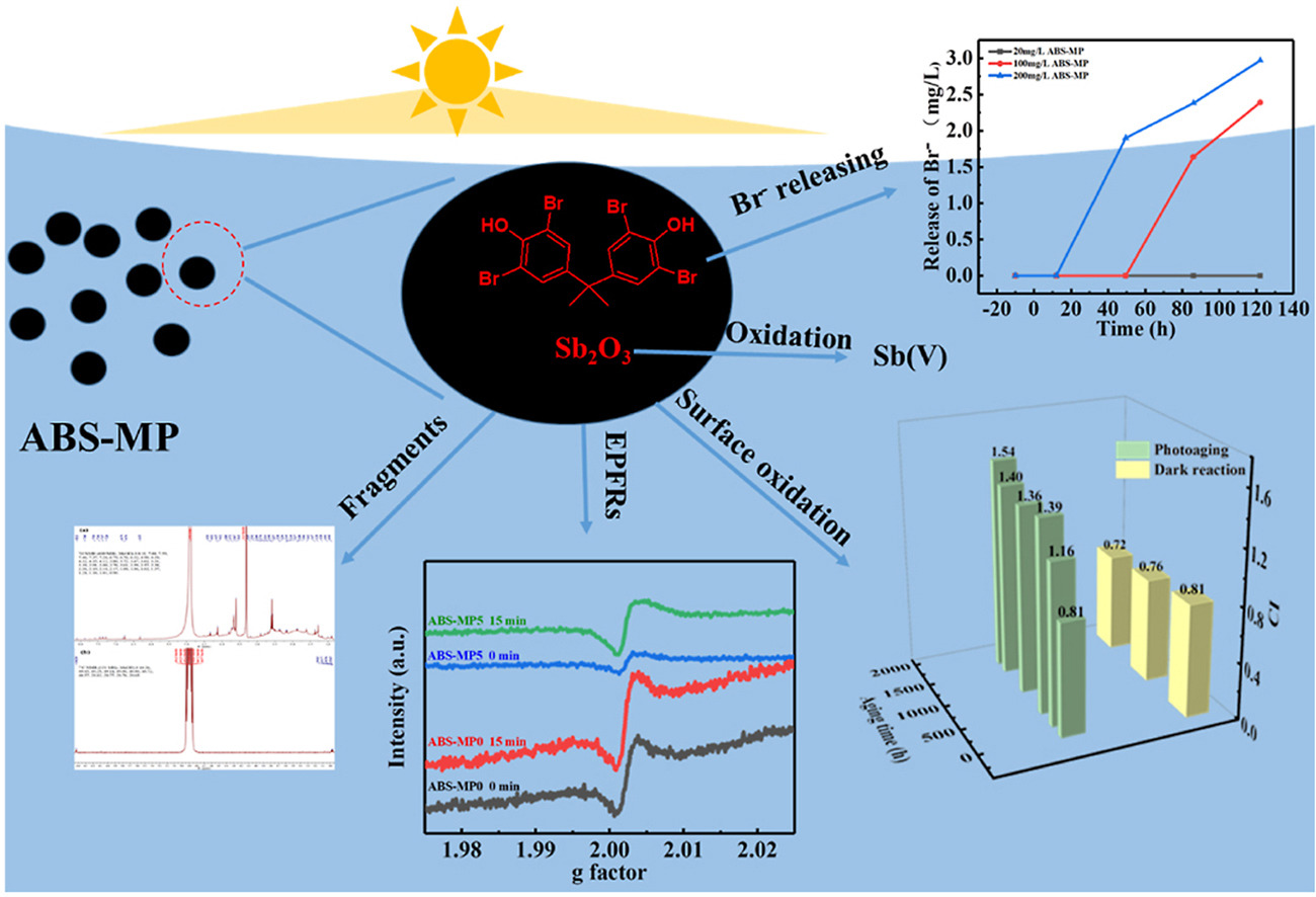微塑料(MPs)污染已成為一個(gè)重要的環(huán)境問題,并對(duì)多種生物構(gòu)成威脅。胡學(xué)鋒教授研究了水中丙烯腈-丁二烯-苯乙烯微塑料(ABS-MP)在模擬太陽光照射下進(jìn)行光老化產(chǎn)生的表面形貌和官能團(tuán)的變化,同時(shí)檢測老化產(chǎn)物在水中的釋放。調(diào)研了老化程度對(duì)環(huán)境持久性自由基(EPFRs)的影響及光照下二次EPFRs的生成??疾炝颂砑觿┧匿咫p酚A(TBBPA)和Sb2O3在光老化過程中的轉(zhuǎn)化。論文發(fā)表在環(huán)境TOP期刊Journal of Environmental Management。ABS及其添加劑TBBPA在自然環(huán)境中光老化及轉(zhuǎn)化的研究,有助于對(duì)進(jìn)入環(huán)境中微塑料潛在危害的深入理解。