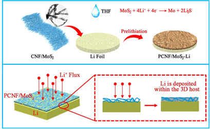 11預(yù)鋰化邊緣富集的MoS2納米片鑲嵌碳纖維作為保護(hù)層穩(wěn)定金屬鋰負(fù)極