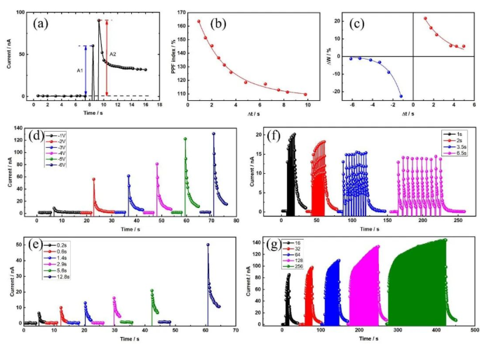 許并社團(tuán)隊(duì)尉國棟教授類人工智能研究領(lǐng)域較大突破。即,①利用一種簡易的方法制備出黑磷-氧化石墨烯人工突觸器件;②基于黑磷的局域場增加效應(yīng)和石墨烯量子點(diǎn)的量子限制效應(yīng)的協(xié)同作用提升了器件的電子存儲能力;③獲得了高穩(wěn)定、低功耗的黑磷/氧化石墨烯人工突觸器件,能夠模擬生物突觸的多種功能;④在人工智能領(lǐng)域具有廣泛的應(yīng)用前景。