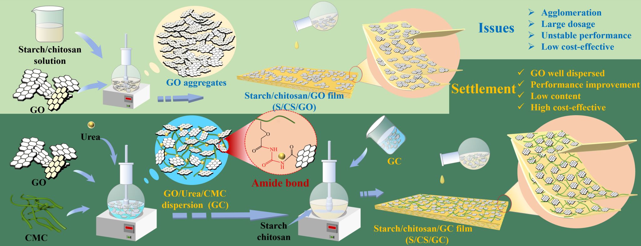 本論文的創(chuàng)新之處在于采用解決了超低含量氧化石墨烯(0.01wt%)在羧甲基纖維素(CMC)/殼聚糖復合膜中難以均勻單層分散的問題,該復合膜的拉伸性能比對照組提高了91.7%,水蒸氣透氣性(WVP)低,耐水性好,在50%可見光下紫外線屏蔽效果保持在92%。薄膜由溢出抗菌模式轉(zhuǎn)變?yōu)榻佑|抗菌模式,對大腸桿菌和金黃色葡萄球菌的抑菌能力分別比對照組提高23.8%和25.6%,可廣泛應用于食品和藥品包裝領(lǐng)域。