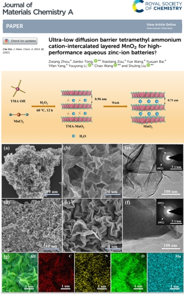 [9] Zixiang Zhou, Jianbo Tong, Xiaoliang Zou, Yue Wang, Yuxuan Bai, Yifan Yang, Youyong Li, Chao Wang, Shuling Liu. Ultra-low diffusion barrier tetramethyl ammonium cation-intercalated layered MnO2 for high performance aqueous zinc-ion batteries, Journal of Materials Chemistry A, 2024, 12: 10923.