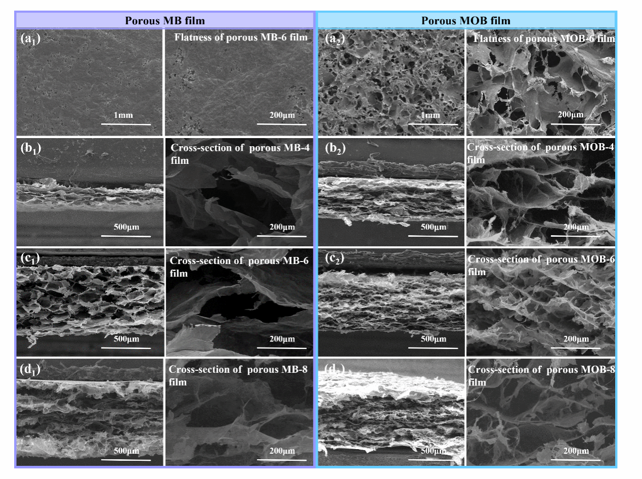 分子交聯(lián)與離子分子雙交聯(lián)多孔MXene膜的微觀形貌
