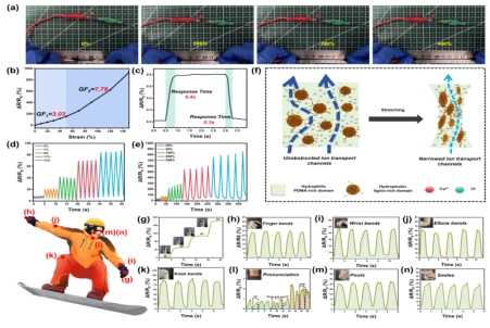 游翔宇副教授等利用溶劑交換法開發(fā)了一種木質(zhì)素/聚(N,N-二甲基丙烯酰胺)和海藻酸鈉/Ca2+的雙交聯(lián)網(wǎng)絡(luò)木質(zhì)素基水凝膠。得益于多層次的剛性網(wǎng)絡(luò)和能量耗散結(jié)構(gòu),這種兼具高模量、超韌性和優(yōu)異傳感能力的木質(zhì)素基水凝膠,在極限運(yùn)動(dòng)保護(hù)和可穿戴傳感器中顯示出應(yīng)用潛力。該研究發(fā)表于國際頂級期刊Advanced Functional Materials。
