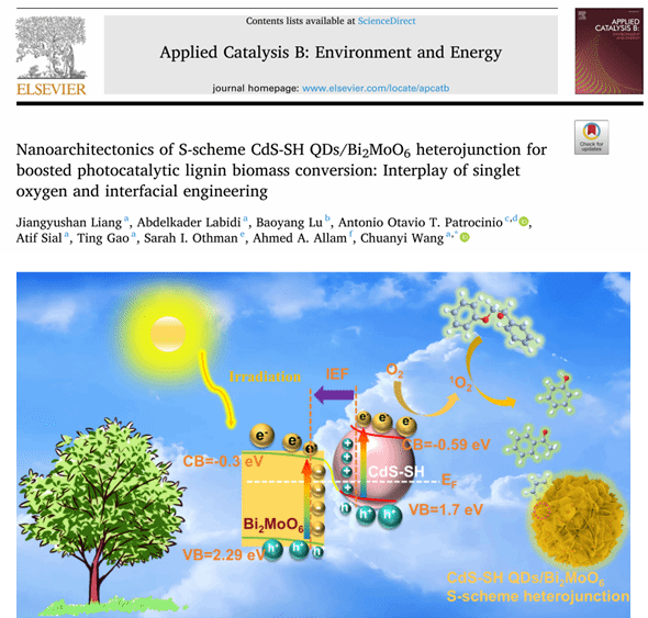 木質(zhì)素作為自然界中唯一的可再生芳香族資源,其高效轉(zhuǎn)化一直是生物質(zhì)利用領(lǐng)域的研究熱點(diǎn),但Cβ-O鍵的高穩(wěn)定性制約轉(zhuǎn)化效率?;诖耍倚M鮽髁x教授團(tuán)隊(duì)開發(fā)了一種S-構(gòu)型異質(zhì)結(jié)的光催化劑(CdS-SH QDs/Bi2MoO6),通過界面Bi-S鍵增強(qiáng)載流子分離,激活單線態(tài)氧(1O2)精準(zhǔn)攻擊木質(zhì)素Cβ-O鍵,實(shí)現(xiàn)了木質(zhì)素生物質(zhì)的高效轉(zhuǎn)化。以PP-ol(2-苯氧基-1-苯基乙醇)為模型化合物,苯酚/苯乙酮產(chǎn)率達(dá)90%+;通過在自然環(huán)境下裂解從馬尾松提取的堿木質(zhì)素的,香蘭素產(chǎn)量較單一催化劑提升70倍。該工作為設(shè)計(jì)能夠在實(shí)際環(huán)境中有效解聚木質(zhì)素的光催化劑提供了新的視角。(原文鏈接:https://doi.org/10.1016/j.apcatb.2025.125092)