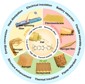 圖1 PBO納米纖維的特性、多維度材料構(gòu)筑及應(yīng)用
