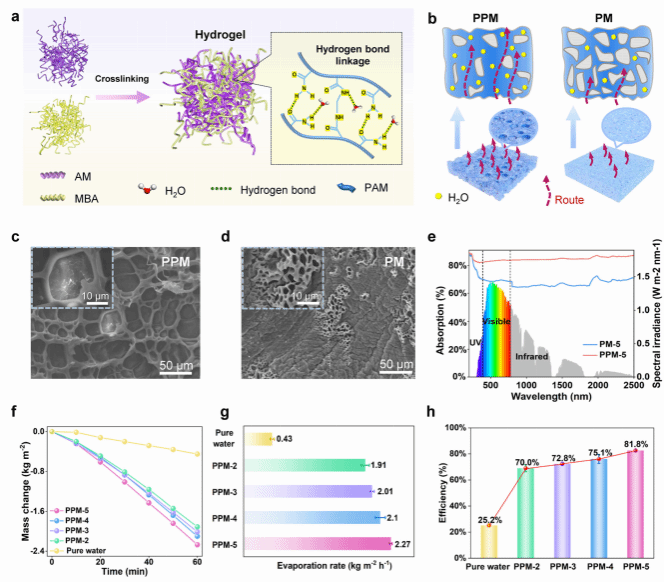 圖3:界面蒸發(fā)器水傳輸調(diào)控及性能表征