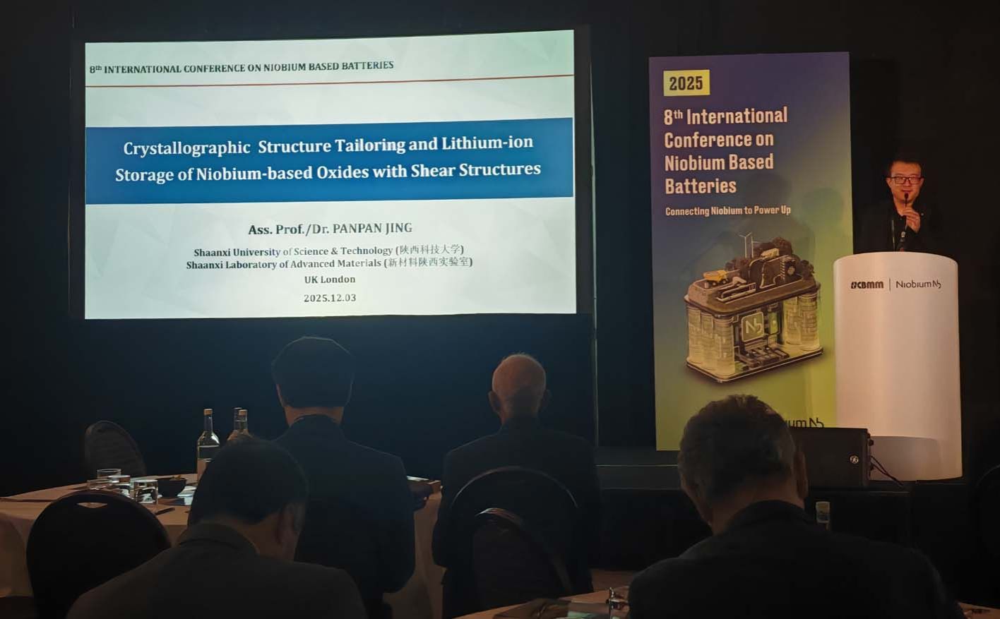 陜西科技大學(xué)景盼盼副教授的科研成果“Tailoring the Wadsley–Roth crystallographic shear structures for high-power lithium-ion batteries, Energy & Environmental Science, 2024, 17, 6571(IF2025=30.8, ESI 熱點(diǎn)論文和高倍引論文)”在“2025年鈮在電池中研究?jī)?yōu)秀論文獎(jiǎng)”評(píng)選中,從200余篇候選論文中脫穎而出,獲得“一等獎(jiǎng)”殊榮(2025 The Paper of Excellent Award for Niobium Based Battery, The First Prize)”,并分別受邀出席了于10月29-30日由中信金屬(CITIC Metal)與巴西礦業(yè)公司(CBMM)聯(lián)合舉辦的“2025[第八屆]鈮在電池中應(yīng)用國(guó)際研討會(huì)(中國(guó)上海)(2025 Internation Conference on Niobium Based Batteries-The 8th Edition)”和12月3-4日由英國(guó)貝塔科技(Beta Technology)與巴西礦業(yè)公司(CBMM)聯(lián)合舉辦的“2025 8th National Conference of Niobium-Based Batteries-Connecting Niobium to Power Up(英國(guó)倫敦)”。與會(huì)期間,景盼盼副教授分別做了題為“Blocking Configuration Tailoring and Lithium-Ion Storage of Niobium-Based Oxides with Shear-Structures”的大會(huì)報(bào)告。