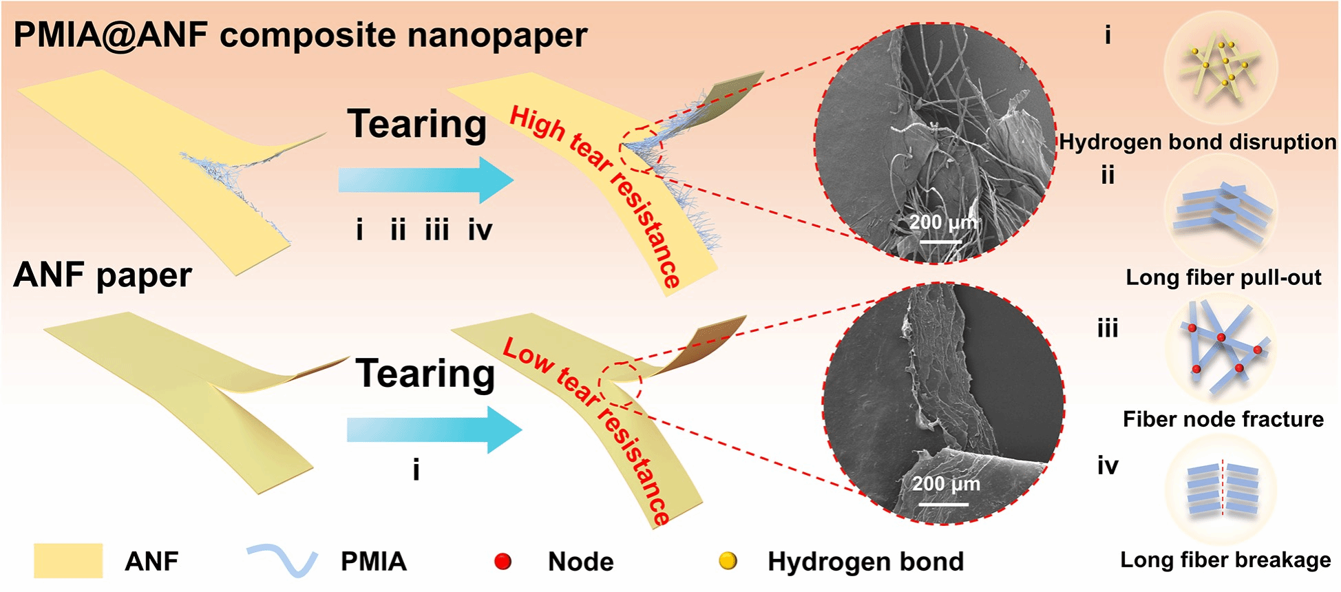 電氣絕緣材料是確保電氣系統(tǒng)運行安全和能源效率優(yōu)化的基石,廣泛應(yīng)用于超高壓變壓器和驅(qū)動電機等關(guān)鍵領(lǐng)域。當(dāng)前,紙基絕緣材料因其輕質(zhì)、高介電強度和可設(shè)計性而備受關(guān)注,但傳統(tǒng)聚間苯二甲酰間苯二甲胺(PMIA)絕緣紙存在結(jié)構(gòu)疏松、機械性能差和介電強度低的問題,而芳綸納米纖維(ANF)紙雖具有優(yōu)異的拉伸強度和介電性能,卻因纖維節(jié)點固定、難以通過滑移耗散能量,導(dǎo)致撕裂強度極低,易發(fā)生脆性斷裂,嚴(yán)重限制其在高電壓和極端環(huán)境下的應(yīng)用。