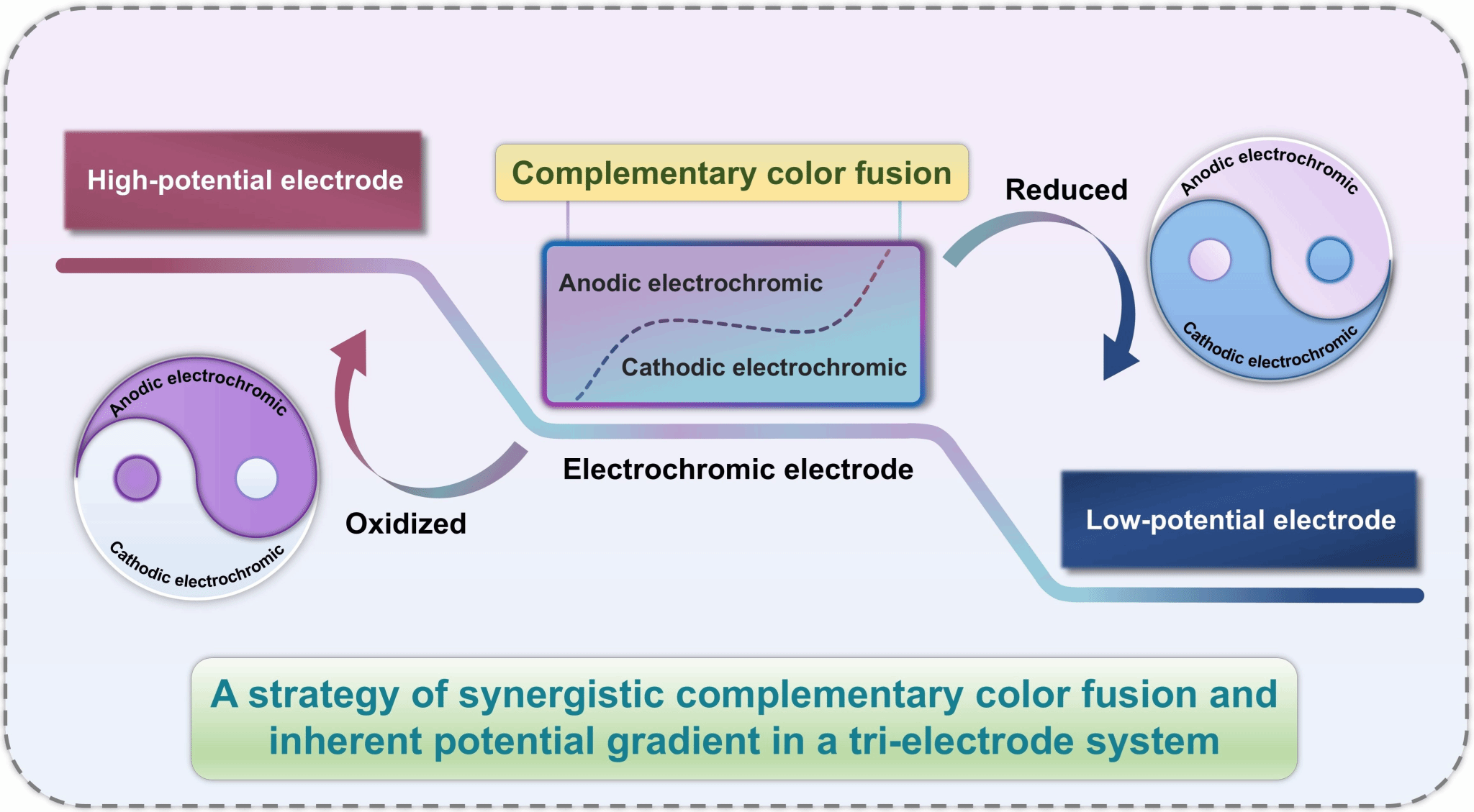 隨著柔性電子與可持續(xù)能源技術(shù)的飛速發(fā)展,開(kāi)發(fā)兼具信息顯示與能量管理功能的新型器件成為前沿?zé)狳c(diǎn)。本工作創(chuàng)新性地提出了一種新型的自供電電致變色系統(tǒng)。該系統(tǒng)利用陰陽(yáng)極電致變色材料的互補(bǔ)顏色融合效應(yīng)實(shí)現(xiàn)豐富的顏色變化,并以系統(tǒng)內(nèi)部的固有電勢(shì)梯度為驅(qū)動(dòng)力,實(shí)現(xiàn)了快速可逆的多色切換,擺脫了傳統(tǒng)器件對(duì)外部電源的依賴。此外,該系統(tǒng)還可通過(guò)靈活的電極組合,實(shí)現(xiàn)多種功率的電能輸出模式并伴隨相應(yīng)的顏色指示?;谏鲜鎏匦?,該系統(tǒng)已成功應(yīng)用于可重構(gòu)多色顯示陣列與觸控式智能標(biāo)簽,在動(dòng)態(tài)信息顯示、交互式包裝等領(lǐng)域展現(xiàn)出廣闊的應(yīng)用前景。