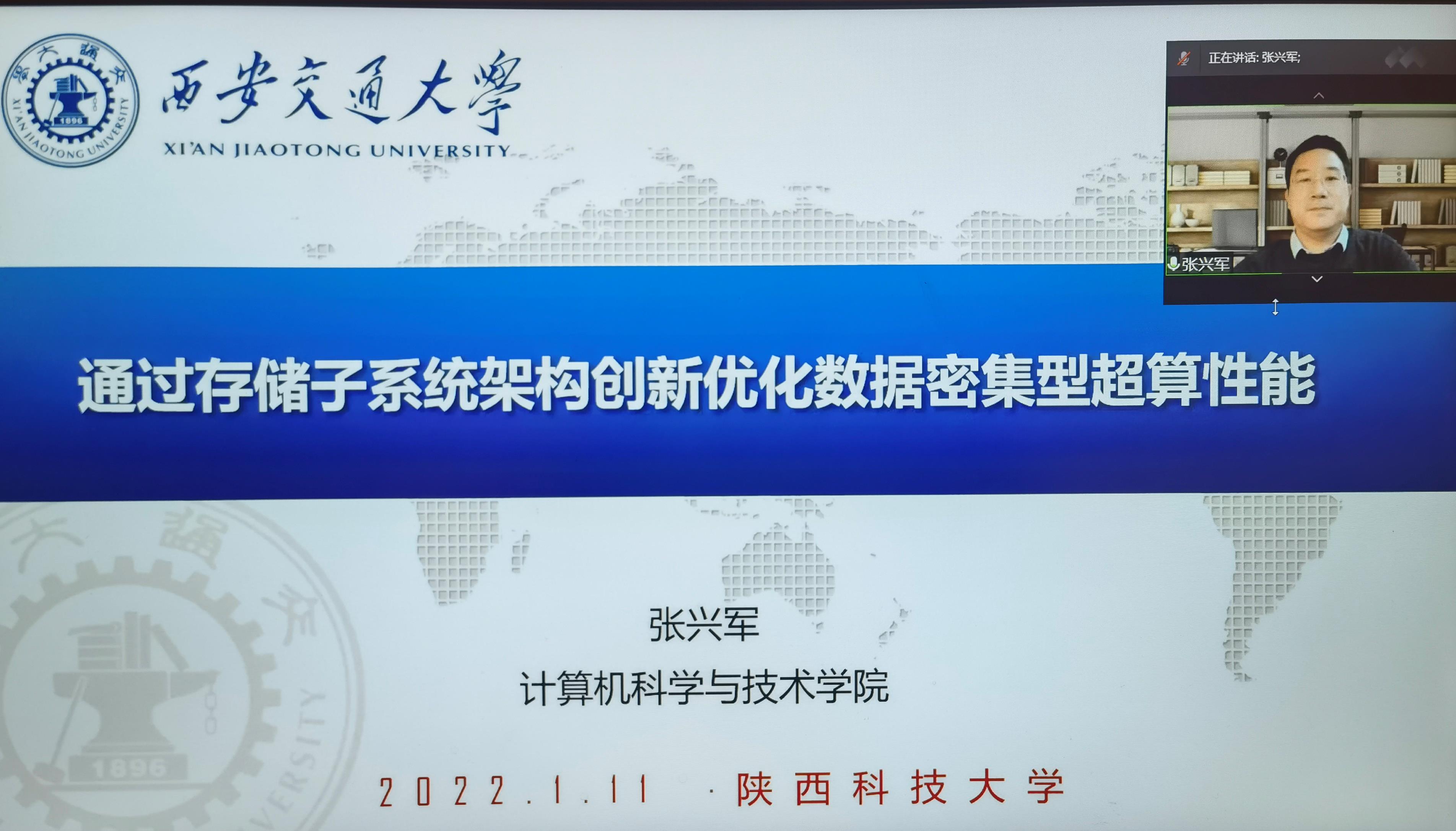 1月11日晚上,應(yīng)電子信息與人工智能學(xué)院、科技處、前沿院邀請(qǐng),西安交通大學(xué)張興軍教授做客我校“前沿科學(xué)報(bào)告”,作了題為“通過(guò)存儲(chǔ)子系統(tǒng)架構(gòu)創(chuàng)新優(yōu)化數(shù)據(jù)密集型超算性能”的線上學(xué)術(shù)報(bào)告。電智學(xué)院相關(guān)專業(yè)教師和研究生參加此次報(bào)告會(huì),本次報(bào)告會(huì)由電智學(xué)院院長(zhǎng)助理孫連山主持。