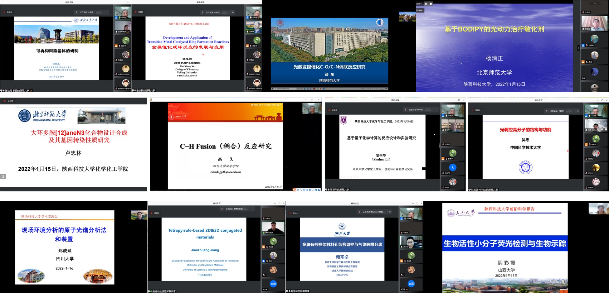 1月13日-1月19日,應我?;瘜W與化工學院、科技處、前沿院邀請,清華大學李艷梅教授、北京大學余志祥教授、南京大學黎書華教授、南京大學謝代前教授、中國科技大學吳思教授、浙江大學鮑宗必教授、北京科技大學姜建壯教授、西北工業(yè)大學張秋禹教授、西安交通大學魏進家教授、西安交通大學張早校教授、西安交通大學何熾教授、西安交通大學楊伯倫教授、四川大學鄭成斌教授、四川大學高戈教授、蘭州大學房建國教授、北京師范大學盧忠林教授、北京師范大學楊清正教授、北京理工大學謝海燕教授、南京理工大學鐘秦教授、陜西師范大學薛東教授、江蘇大學施偉東教授、天津工業(yè)大學魏俊富教授、西安石油大學屈撐囤教授、山西大學陰彩霞教授等24位專家做客我?!扒把乜茖W報告”,為學院師生作了線上系列學術報告。報告會由化工學院副院長仝建波教授主持。