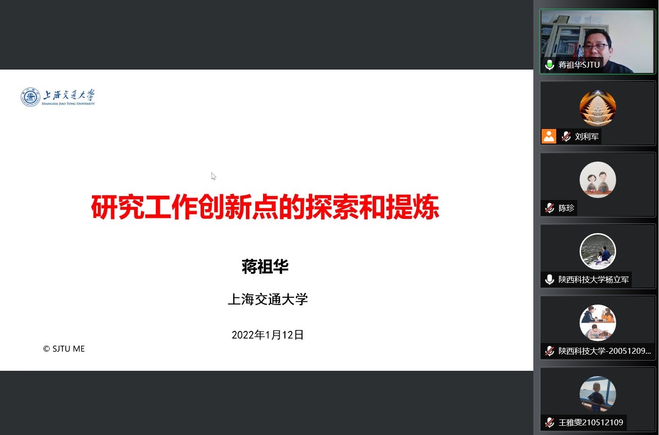1月12日上午,應我校機電工程學院邀請,上海交通大學蔣祖華教授做客我?!扒把乜茖W報告”,作了題為“研究工作創(chuàng)新點的探索和提煉”的線上學術報告。機電工程學院教師及研究生230余人參加了此次報告會,報告會由副院長楊立軍主持。