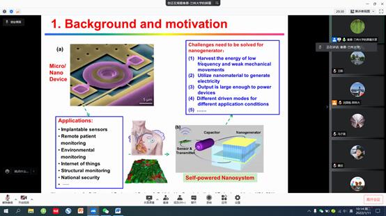1月12日下午,應(yīng)我校輕工科學與工程學院、科技處及前沿院邀請,蘭州大學秦勇教授做客我?!扒把乜茖W報告”,作了題為“彈性納米發(fā)電機”的線上學術(shù)報告。報告由輕工學院副院長劉國棟主持,輕工學院部分教師及相關(guān)專業(yè)研究生參加了本次報告。