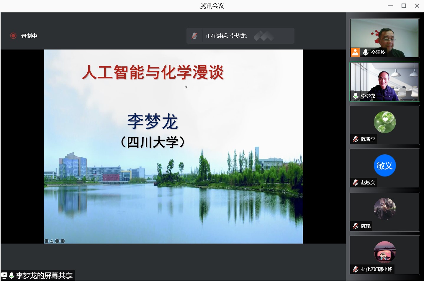 1月6日下午,應(yīng)我校科技處、前沿院及化學(xué)與化工學(xué)院邀請(qǐng),四川大學(xué)李夢(mèng)龍教授做客我?!扒把乜茖W(xué)報(bào)告”,作了題為“人工智能與化學(xué)漫談”的報(bào)告。報(bào)告會(huì)由化學(xué)與化工學(xué)院副院長(zhǎng)仝建波主持,學(xué)院相關(guān)專(zhuān)業(yè)教師、研究生聆聽(tīng)了此次報(bào)告會(huì)。