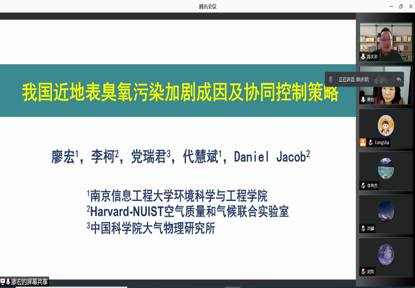 12月30日,應(yīng)環(huán)境科學(xué)與工程學(xué)院、科技處及前沿院邀請(qǐng),南京信息工程大學(xué)教授、博士生導(dǎo)師廖宏做客我?!扒把乜茖W(xué)報(bào)告”,作了題為“我國(guó)近地表臭氧污染加劇成因及協(xié)同控制策略”的線上學(xué)術(shù)報(bào)告,環(huán)境學(xué)院及其他兄弟院校、科研院所師生200余人聆聽(tīng)了本次報(bào)告。會(huì)議由環(huán)境學(xué)院陳慶彩教授主持。
