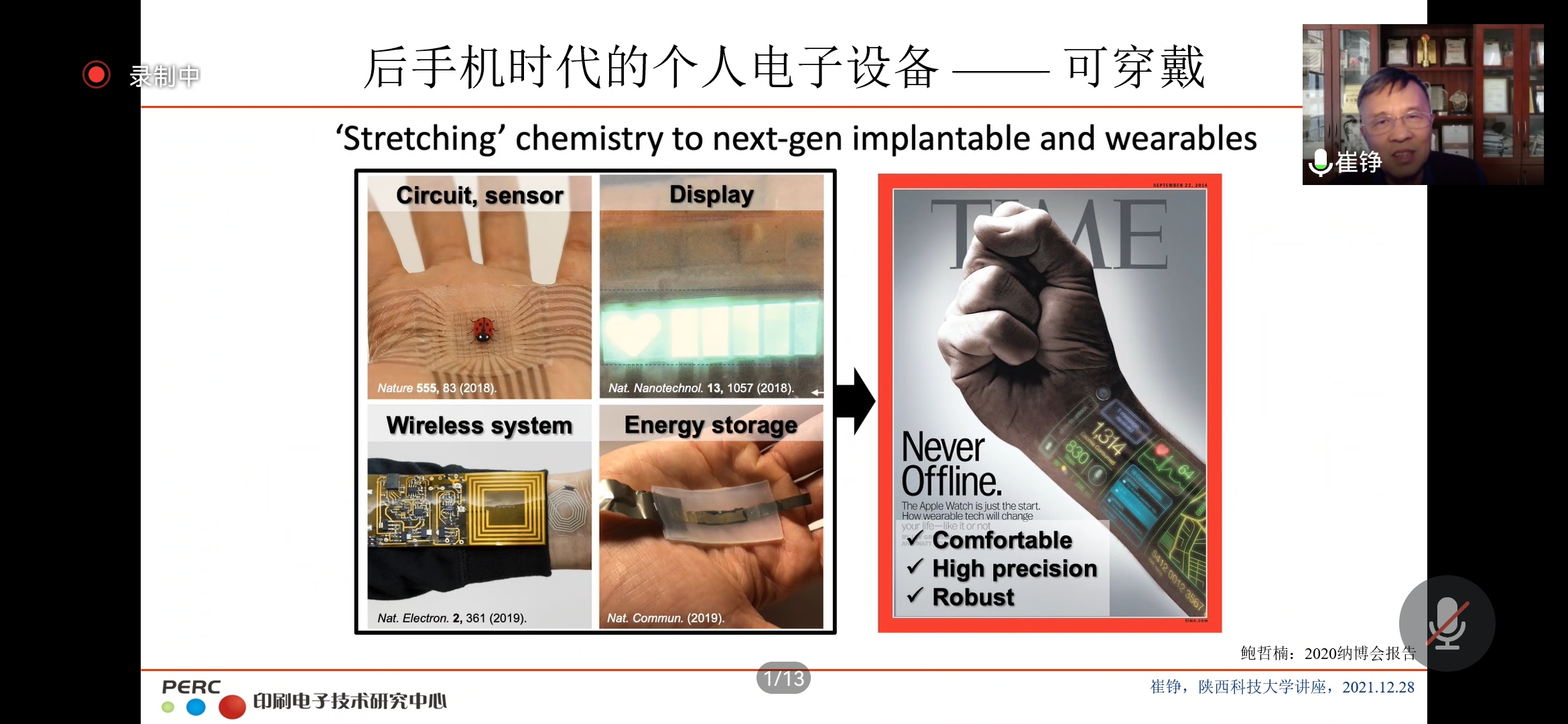 崔錚研究員的報(bào)告分析了集成電路芯片制造的微納加工技術(shù)與印刷增材加工技術(shù)的特點(diǎn),介紹了用于印刷制造電子器件的電子墨水技術(shù)與工藝,闡述了印刷電子的技術(shù)特征、應(yīng)用及其所面臨的挑戰(zhàn)。崔錚研究員結(jié)合中科院蘇州納米所印刷電子中心過(guò)去十年的科研實(shí)踐成果,展示了印刷加工技術(shù)在柔性電子領(lǐng)域的應(yīng)用潛力。可以說(shuō),印刷技術(shù)為納米材料的工業(yè)化應(yīng)用提供了思路。