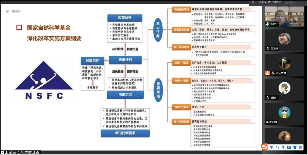 國家自然基金申報是一項重要的工作,選題的科學性、研究的創(chuàng)新性、成果的轉化性代表著國家的科研水平,更是高校科研能力的集中體現(xiàn),賀雪梅教授希望大家向蘇教授學習,挖掘自身的研究專長、凝練研究問題、學習研究方法,持之以恒的堅定信念,在基金申報的道路上不斷學習、進取、創(chuàng)新。