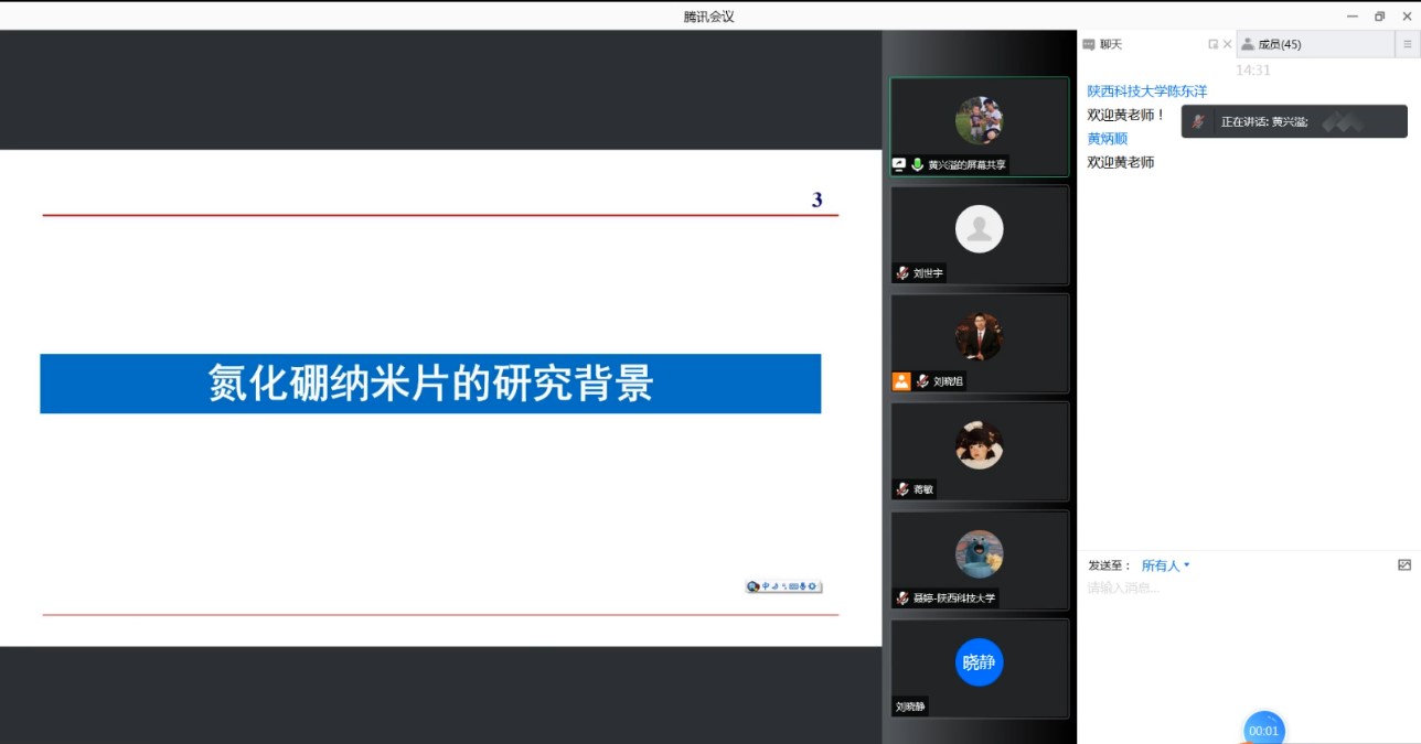 12月11日下午,應(yīng)材料科學(xué)與工程學(xué)院邀請(qǐng),上海交通大學(xué)黃興溢教授做客我校“前沿科學(xué)報(bào)告”論壇,作了題為“二維氮化硼納米片的制備及應(yīng)用”的學(xué)術(shù)報(bào)告。本次報(bào)告由材料學(xué)院劉曉旭教授主持,學(xué)院相關(guān)教師和學(xué)生參加了本次報(bào)告會(huì),因疫情影響,本次報(bào)告采取線上的方式進(jìn)行。