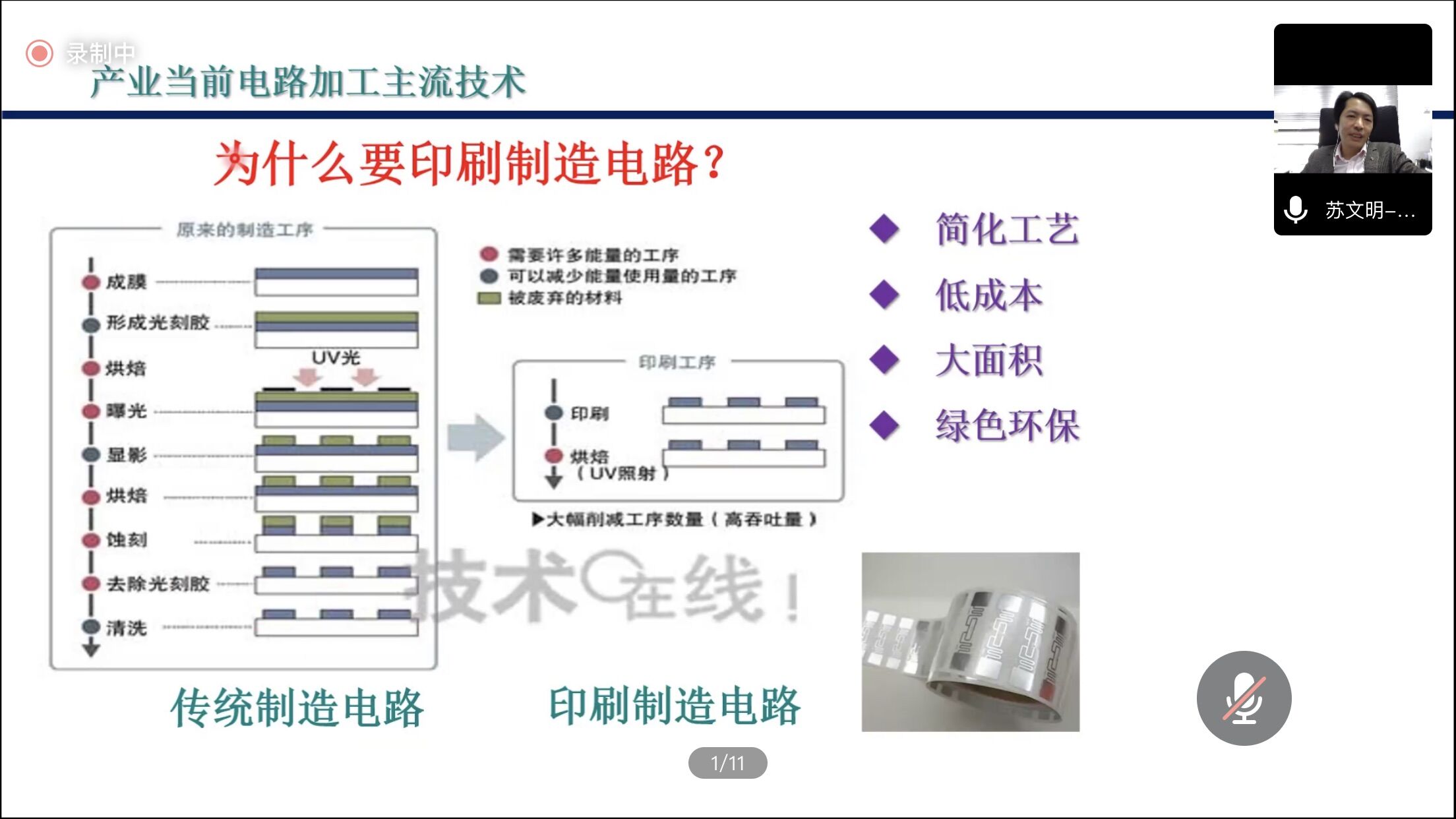 近幾年柔性印刷電子技術與產(chǎn)業(yè)在中國蓬勃發(fā)展,印刷作為一種實現(xiàn)大面積柔性電子與光電子產(chǎn)品的低成本綠色制造技術,正在成為電子制造的一個新業(yè)態(tài)。蘇文明研究員基于印刷柔性電子研究,聚焦國家戰(zhàn)略產(chǎn)業(yè)技術需求,致力于前沿產(chǎn)業(yè)應用技術開發(fā)。報告中蘇文明研究員闡明了電磁屏蔽、超低方阻、透明天線、除冰防霧等關鍵材料的研發(fā)與技術瓶頸的突破。并以印刷QLED發(fā)光顯示技術研究為突破口,對“噴墨打印QD層、QLED交聯(lián)傳輸材料、小分子熱交聯(lián)HTL材料、低溫交聯(lián)策略”做出的原創(chuàng)性成果進行了介紹,實現(xiàn)了技術方案工程化示范與前沿探索,完成了對傳統(tǒng)加工技術的超越。