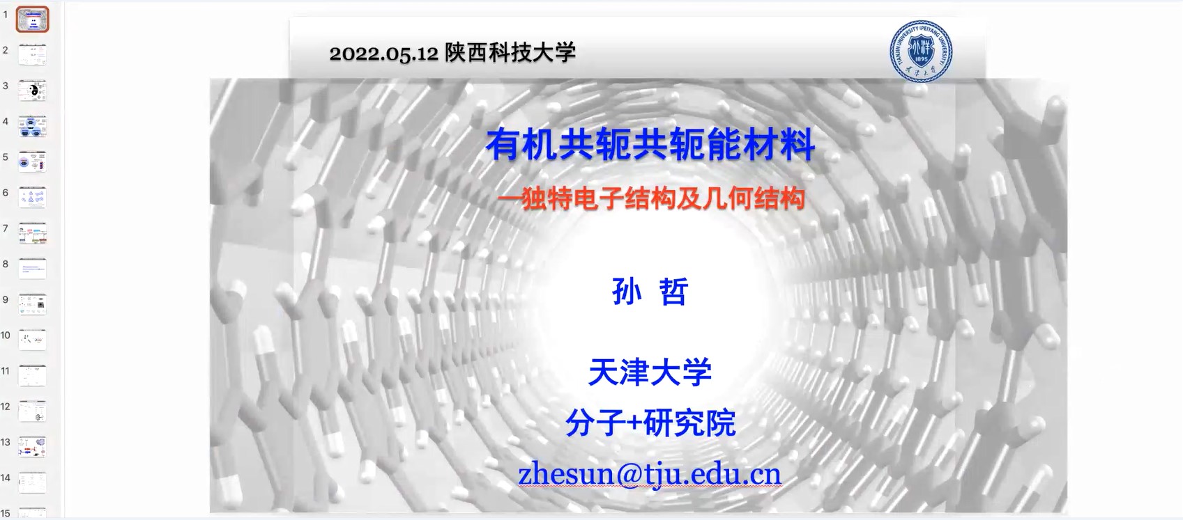 孫哲教授從傳統(tǒng)的有機共軛結構與應用分析出發(fā),介紹了共軛體系電子結構和幾何結構的相關性。先后介紹了課題組近年來圍繞雙線態(tài)單自由基、單線態(tài)雙自由基與碳納米環(huán)/帶/管/籠三個方面開展的系列工作,介紹了所合成有機共軛材料在響應材料電荷、自旋傳輸有機導體、多孔材料超分子主客體手性材料等方面的獨特應用。