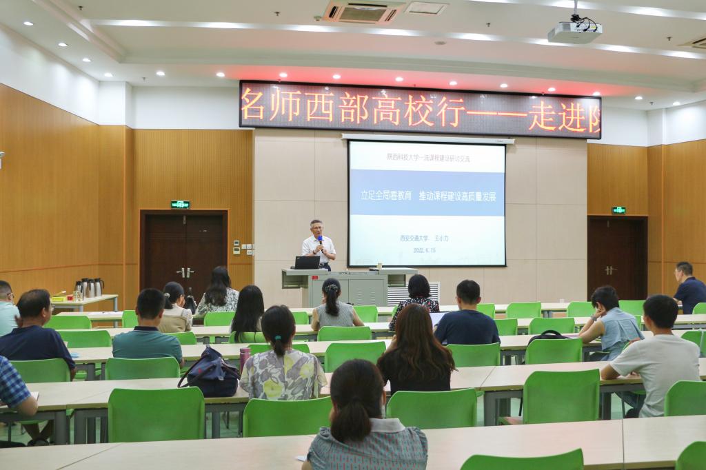 6月15日下午,由西北地區(qū)高等學(xué)校教師教學(xué)發(fā)展中心聯(lián)盟主辦,我校教師發(fā)展中心及教務(wù)處承辦的“名師西部高校行——走進(jìn)陜西科技大學(xué)”報告會在我校舉行。特邀國家級教學(xué)名師、西安交通大學(xué)王小力教授做了題為《立足全局看教育,推動課程建設(shè)高質(zhì)量發(fā)展》的主題報告。教師發(fā)展中心常務(wù)副主任徐永建主持了本次活動,西北教師發(fā)展聯(lián)盟執(zhí)行秘書長吉康敏及我校教務(wù)處負(fù)責(zé)人參加活動。