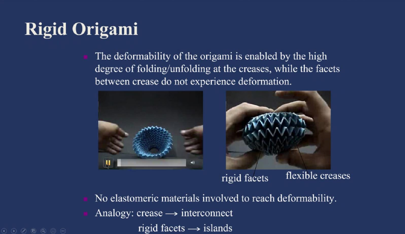姜漢卿教授主要從載能化、功能化兩個(gè)角度詮釋了柔性電子發(fā)展歷程,并介紹了基于“軟”結(jié)構(gòu)設(shè)計(jì)的機(jī)械超材料在工程實(shí)踐中的應(yīng)用及發(fā)展?jié)撃堋=獫h卿教授還深入淺出地講解了如何采用折紙-剪紙技術(shù)使功能化器件獲得優(yōu)異的延展性、可拉伸性并兼具剛度,并從力學(xué)的角度闡述了直線型與曲線型折痕單元設(shè)計(jì)在未來(lái)構(gòu)建軟體機(jī)器人的重要引領(lǐng)作用。