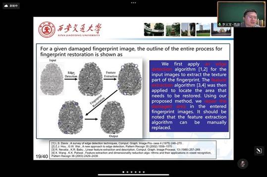 報(bào)告會(huì)上,李義寶教授結(jié)合實(shí)踐經(jīng)驗(yàn)和研究成果,介紹一個(gè)非局部的Cahn-Hilliard方程及其在3D打印和指紋修復(fù)中的應(yīng)用。報(bào)告首先介紹了引入非局部Cahn-Hilliard方程目的是模擬高分子聚合物的微觀相分離。通過多次數(shù)值試驗(yàn)得到高效、節(jié)省容量的時(shí)間和步長(zhǎng)。其次提出利用Crank-Nicolson方法離散非局部Cahn-Hilliard方程,并證明該方案是無條件能量穩(wěn)定。然后提出一種穩(wěn)健高效的指紋圖像恢復(fù)算法和3D打印表面圖案生成方法?;谙噜徬袼匦畔⒌闹讣y恢復(fù)技術(shù)既能保證指紋信息的準(zhǔn)確性,又節(jié)約計(jì)算成本。最后通過數(shù)值算驗(yàn)證了所提方法的有效性。