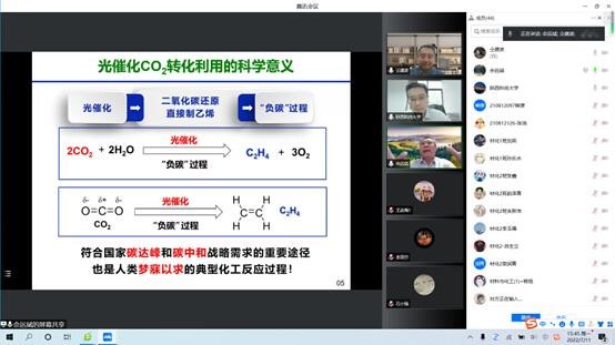 佘遠(yuǎn)斌教授從金屬卟啉類化合物的結(jié)構(gòu)具有極強(qiáng)的可設(shè)計(jì)性和調(diào)控性的背景出發(fā),介紹了其作為血紅素、葉綠素的母體或模擬物以及催化材料的應(yīng)用前景。簡(jiǎn)要介紹了金屬卟啉類催化材料的設(shè)計(jì)、合成,以及利用其催化氧氣選擇氧化環(huán)己烷、各類芳烴側(cè)鏈綠色合成醇、醛、酮、酸等各類中間體或從產(chǎn)品。重點(diǎn)介紹了利用其構(gòu)筑人工光合作用催化體系,通過太陽(yáng)光將CO2與水反應(yīng)直接生成乙烯,以及將廢鹽與二氧化碳作用直接制備純堿和小蘇打。