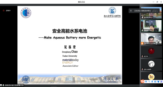 11月9日,應(yīng)我校輕工科學(xué)與工程學(xué)院(柔性電子學(xué)院)、科技處及前沿院邀請(qǐng),復(fù)旦大學(xué)晁棟梁教授做客我?!扒把乜茖W(xué)報(bào)告”,作了題為“安全高能水系電池”的線上學(xué)術(shù)報(bào)告。報(bào)告會(huì)由輕工學(xué)院副教授劉漢斌主持,學(xué)院相關(guān)專業(yè)教師、研究生參加了此次報(bào)告會(huì)。