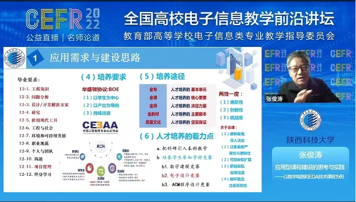11月14日,受教育部高等學(xué)校電子信息專(zhuān)業(yè)教學(xué)指導(dǎo)委員會(huì)邀請(qǐng),我校電子信息與人工智能學(xué)院張俊濤教授在全國(guó)高校電子信息教學(xué)前沿講壇上做了題為“應(yīng)用型課程建設(shè)的思考實(shí)踐”的公益直播報(bào)告。