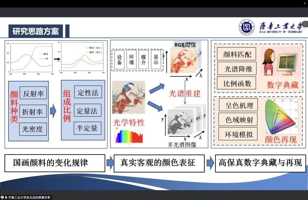 11月21日,應(yīng)輕工科學(xué)與工程學(xué)院和研究生院邀請(qǐng),齊魯工業(yè)大學(xué)吳光遠(yuǎn)副教授做客我?!拔囱雽?dǎo)師論壇”,作了題為“國(guó)畫(huà)藝術(shù)品高保真數(shù)字典藏及再現(xiàn)研究”的線上學(xué)術(shù)報(bào)告。報(bào)告會(huì)由輕工學(xué)院印刷工程系主任遲聰聰主持,學(xué)院相關(guān)專(zhuān)業(yè)教師、研究生及本科生聆聽(tīng)了本次報(bào)告。