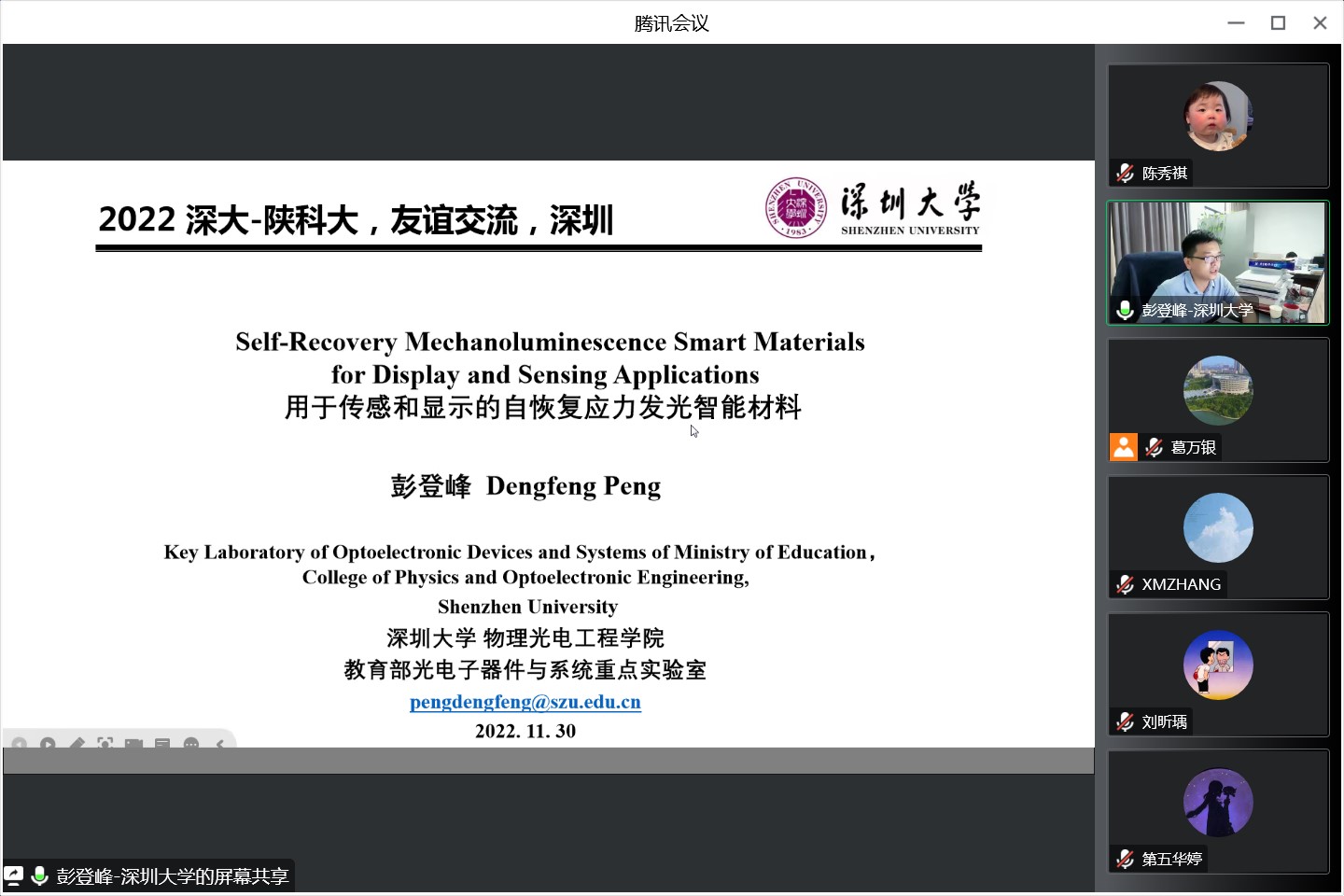 11月30日,應(yīng)我校材料科學(xué)與工程學(xué)院、科技處及前沿院邀請(qǐng),深圳大學(xué)彭登峰教授做客我?!扒把乜茖W(xué)報(bào)告”,為我校師生帶來主題為“用于傳感和顯示的自恢復(fù)應(yīng)力發(fā)光智能材料”的學(xué)術(shù)報(bào)告。報(bào)告會(huì)由材料學(xué)院副院長(zhǎng)王卓教授主持,材料學(xué)院相關(guān)專業(yè)教師及研究生參加了此次報(bào)告會(huì)。