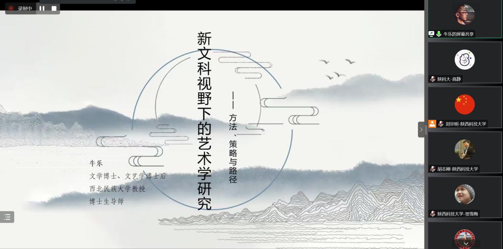 12月7日晚,應(yīng)我校設(shè)計(jì)與藝術(shù)學(xué)院、科技處及前沿院邀請,西北民族大學(xué)牛樂教授做客我?!扒把乜茖W(xué)報(bào)告”,作了題為“新文科視野下藝術(shù)學(xué)研究-方法、策略與路徑”的學(xué)術(shù)報(bào)告。報(bào)告會(huì)由設(shè)藝學(xué)院院長劉宗明教授主持,設(shè)藝學(xué)院相關(guān)專業(yè)師生及全國藝術(shù)設(shè)計(jì)同行近200人參加此次報(bào)告會(huì)。