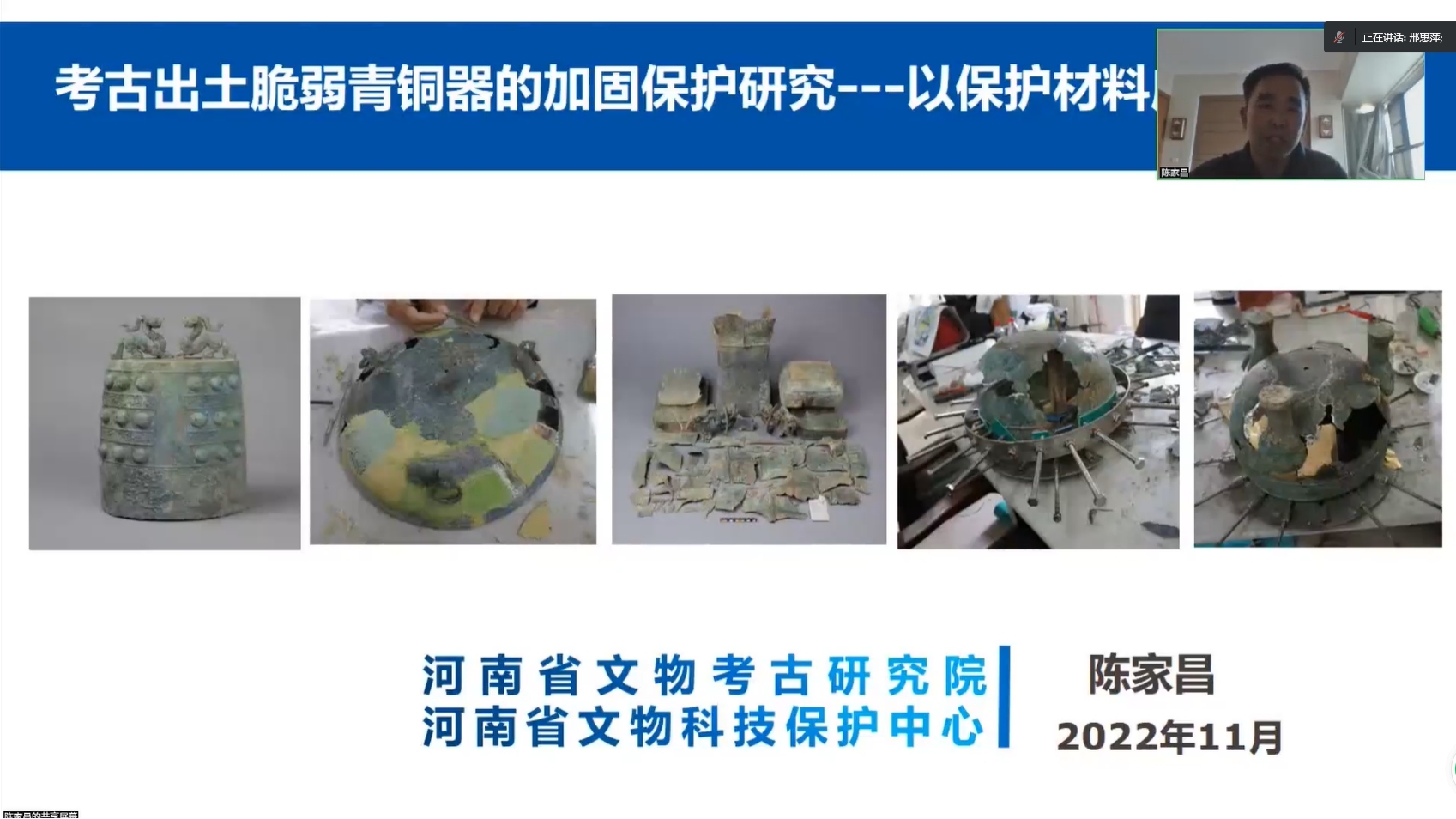 近日,應(yīng)我??萍继帯⑶把卦?、文物保護(hù)科學(xué)與技術(shù)學(xué)院邀請(qǐng),中國(guó)絲綢博物館副館長(zhǎng)周旸研究館員、河南省文物考古研究院副院長(zhǎng)陳家昌研究員、荊州文物保護(hù)中心主任方北松研究館員做客我?!扒把乜茖W(xué)報(bào)告”,分別作了題為“知來(lái)明往 錦程未央——紡織品文物保護(hù)的回顧與展望”“考古出土脆弱青銅器的加固保護(hù)研究---以保護(hù)材料應(yīng)用為視角”“出土飽水竹木漆器保護(hù)與修復(fù)——以荊州文物保護(hù)中心為例”的線上學(xué)術(shù)報(bào)告。報(bào)告由文物保護(hù)科學(xué)與技術(shù)學(xué)院院長(zhǎng)朱建鋒教授主持,學(xué)院相關(guān)領(lǐng)域教師和研究生參加了報(bào)告會(huì)。