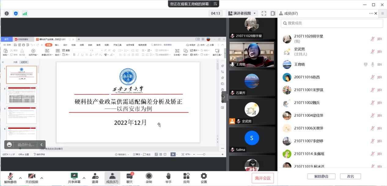 應(yīng)我校經(jīng)濟與管理學(xué)院和研究生院邀請,12月13日晚,西安工業(yè)大學(xué)經(jīng)濟管理學(xué)院王育曉教授做客我?!拔囱雽?dǎo)師論壇”,做了題為“硬科技產(chǎn)業(yè)政策供需適配偏差分析及矯正——以西安市為例”的講座,經(jīng)管學(xué)院教師及全體研究生參加報告會。
