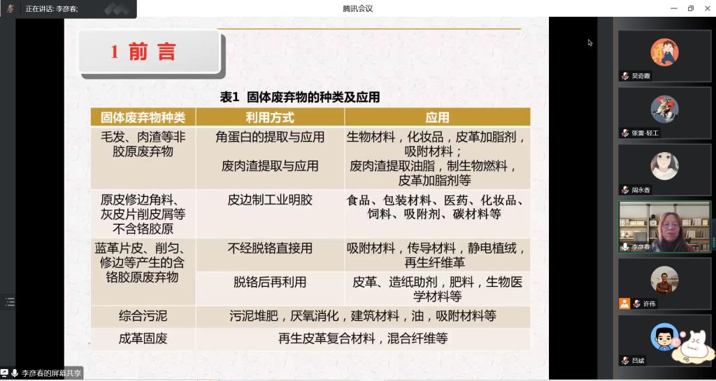 應輕工科學與工程學院和研究生院邀請,中國皮革協(xié)會副秘書長路華、齊魯工業(yè)大學李彥春教授分別于12月15日、12月19日做客我?!拔囱雽熣搲?,分別作了題為“從鞋業(yè)看皮革等鞋用材料發(fā)展”“制革固體廢棄物的資源化利用”的線上學術(shù)報告。學院相關(guān)專業(yè)教師、研究生及本科生參加了報告會。